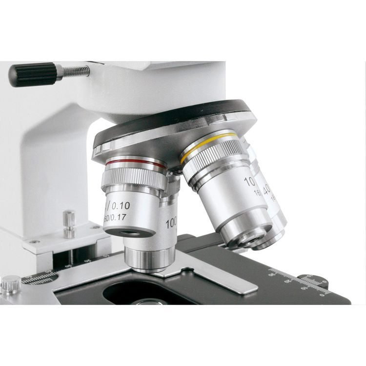 The Bino Researcher is a professional microscope with transmitted illumination, equipped with brilliant optics, a robust metal body and precise workmanship. It is perfect for use in school, studies, and occupation. The comfortable binocular head provides an exceptional bright image and can be individually adjusted according to the observer’s needs. The objective turret, is fitted with 4 DIN objectives and offers a large variety of magnification possibilities. Focussing is done through the use of the coarse and fine adjustment wheels. The illuminator and the double-lens condenser with iris diaphragm guarantee the perfect illumination of the observed object.