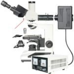In the microscope’s basis, there are a transmitted light halogen illuminator (20 W) as well as the power supply and the continuous adjustable dimmers for reflected light and transmitted light. Both trinocular head attachments function with both illumination modes. They have also the possibilities of photography and binocular visual observation. The inclination of the eyepiece tubes is 30°. The fluorescence attachment includes a high-pressure mercury lamp (100 W) with an external power supply, a filter wheel and a radiation shield. The mercury lamp produces the exciting radiation (namely ultraviolet radiation) in order to get fluorescence. Accessories, which are necessary to be chosen, are excitation systems (with excitation filter, beam splitter and emission filter: green, blue, violet or ultraviolet) and fluorescence objectives (optional: 25x retractable, 40x-glycerine retractable, 100x-glycerine retractable). Fluorescence microscopy is done e. g. in biology, medicine, microchemistry, geology, semiconductor production and environmental protection. The Science ADL 601F is an instrument with an excellent value for money. It has also other features, which are typical for high-quality microscopes: fourfold objective nosepiece, lengthwise and cross the moveable stage, coaxial focusing knobs (concerning fine drive: 200 µm / full turn), adjustment of eye relief, diopter adjustment and the phototube. Optional available, general accessories are the wide field eyepieces (WF10x, WF16x), the dividing eyepiece (WF10x), different planachromatic DIN objectives (e.g. 4x, 5x, 10x, 20x, 40x retractable, 100x-oil retractable), the Abbe condenser (numerical aperture 1,25; with iris diaphragm and auxiliary lens), dark field condensers (dry and oil), immersion oil, the phase contrast set, a field diaphragm (in order to obtain Köhler illumination) and filters (blue, green, yellow, ground glass, polarization).