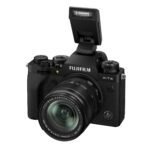 The EF-X8 is portable external flash with a GN of 8m at ISO 100, that is powered through the camera body.