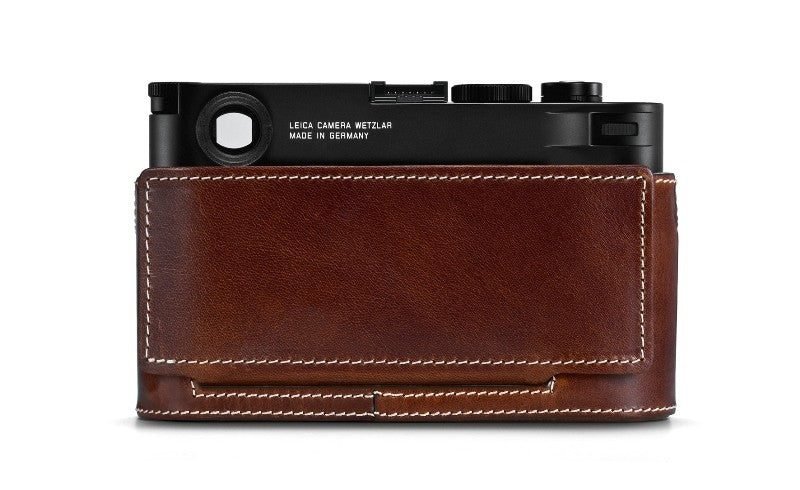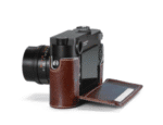 The M10 Protector is made of soft leather in black, red or vintage brown with a moulded grip, making it easy to handle the camera. The included matching leather LCD screen protection on the back is easily removable. The protector can be attached to the camera by a specially designed knurled screw without a tool. All camera controls and functions are easily accessible and optional accessories such as carrying straps, wrist straps and the thumb support can all be used in combination with the protector.