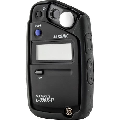 Exceptionally portable and versatile in its design, the L-308X-U Flashmate Light Meter from Sekonic is a versatile meter that blends both photo and video-oriented functions into a single unit. Equipped with a sliding lumisphere, the L-308X is capable of measuring incident or reflected light via a lens with a 40° reception angle. It offers a wide metering range from 0 to 19.9 EV at ISO 100, working with exposure times as low as 1/8000 all the way up to 60 seconds; it also has an equally broad flash range from f/1.0 to f/90.9 at ISO 100.